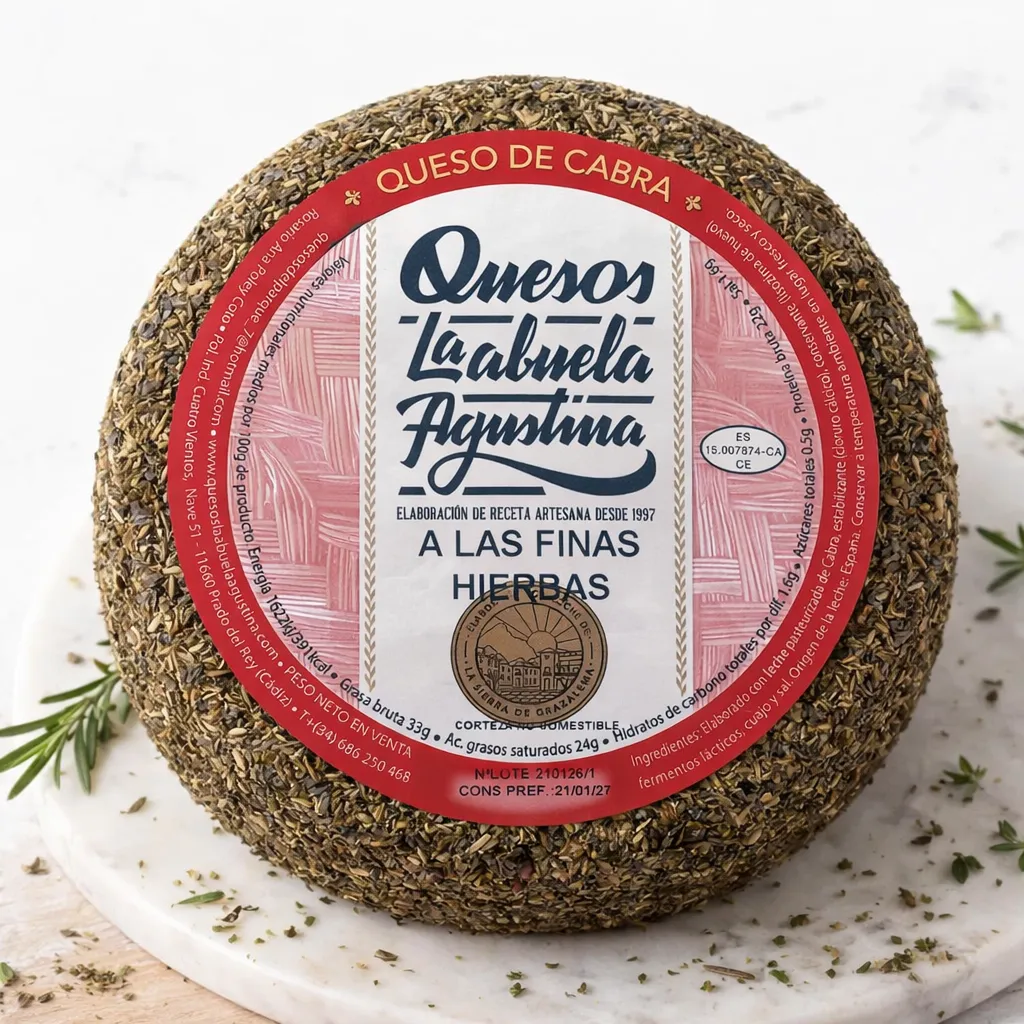 El Queso de Cabra a las Finas Hierbas de La Abuela Agustina se elabora con leche de cabra pasteurizada y madura cuidadosamente para alcanzar una textura equilibrada y un sabor definido, con la personalidad propia de un buen queso de cabra.